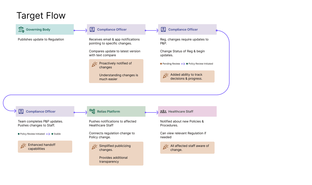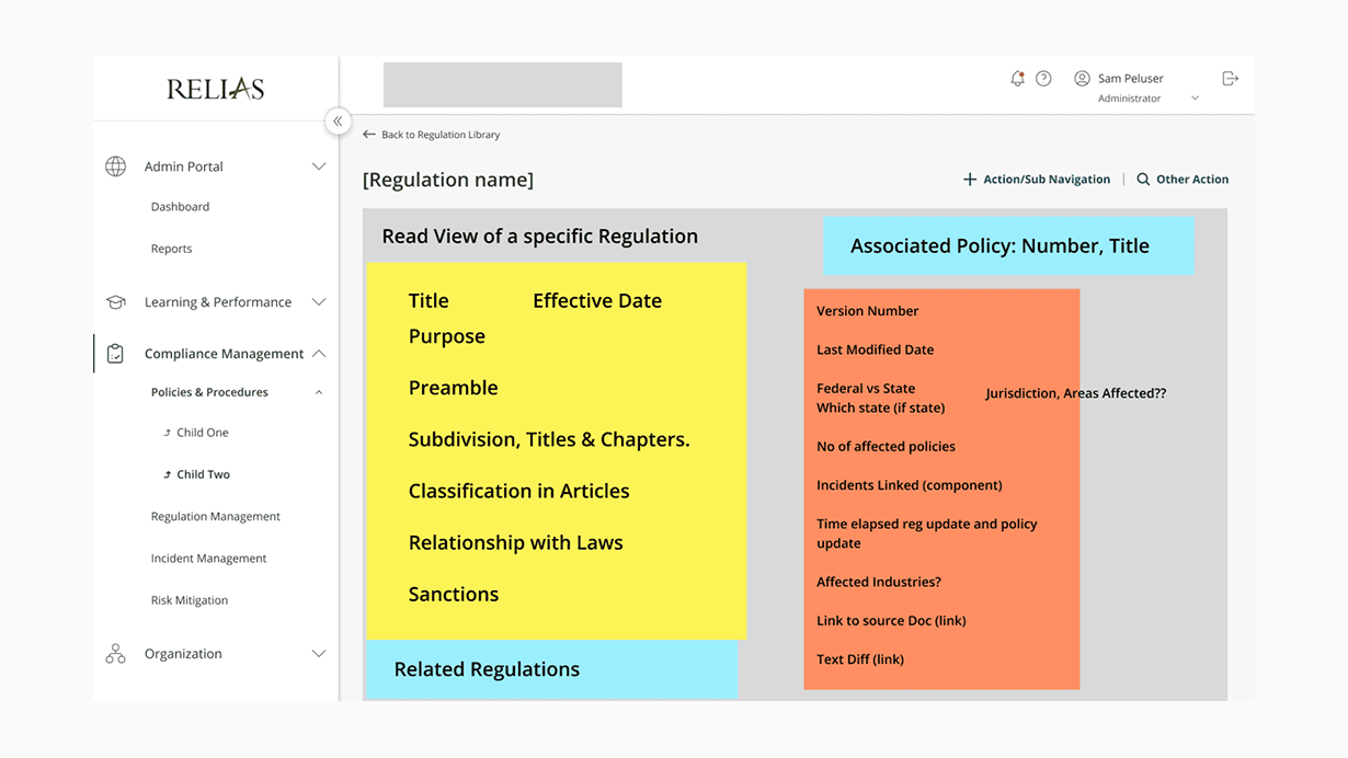 I worked as part of an Insight consulting team to bring Relias's product visions to life while our developers kick started their implementation. As part of a feature 'pod', I focused on the Regulation Management feature while four other teams focused on parallel features and projects.