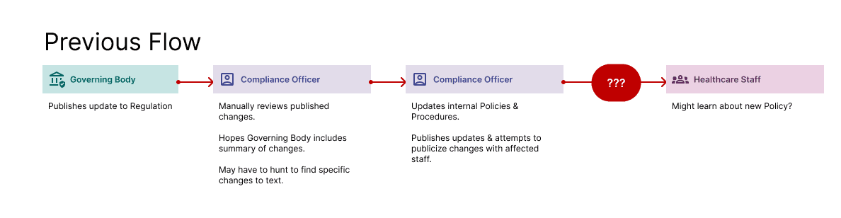 The employees that do the work of monitoring the changes to their set of regulations and codes, understanding the content of the changes, and translating those changes to updates to the HCO's internal policies & procedures are called Healthcare Compliance Officers, and they and their teams have their work cut out for them. Through discovery our team had access to a small set of comments from Compliance employees and learned a number of the challenges they face while doing their work.